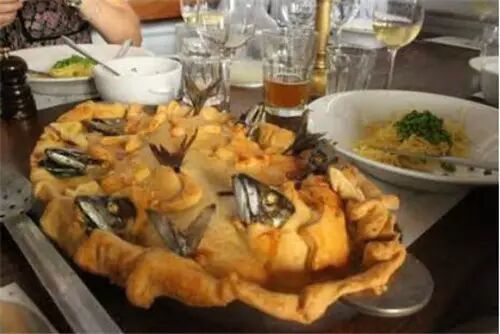 牛肉腰子馅饼是比较开胃的叫法,人家实际名称是牛肾脏派,你想,牛肾脏,单独吃没什么,可做到派里也太一言难尽了吧。讲真,黑暗料理,前三要没有英国在,我都不服。
