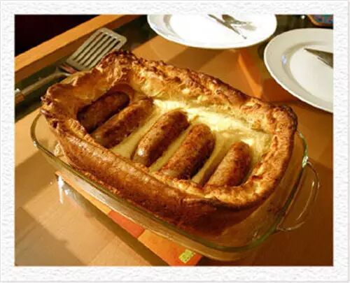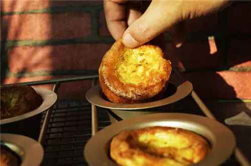 闻名全英的约克郡布丁,其实是一种软面包,凹成容器的样子,绵软松散,吸收肉汁的能力一级强,比直接吃牛肉还爽。