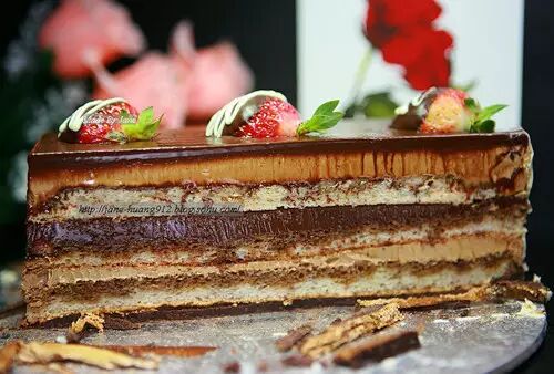 海绵蛋糕浸过咖啡糖浆分层以后,加上奶油、巧克力的内馅儿制成的蛋糕,名字来源有两种说法,一是这种甜点首先在剧院附近流行起来,二是蛋糕的俯视面就像剧院的舞台。
