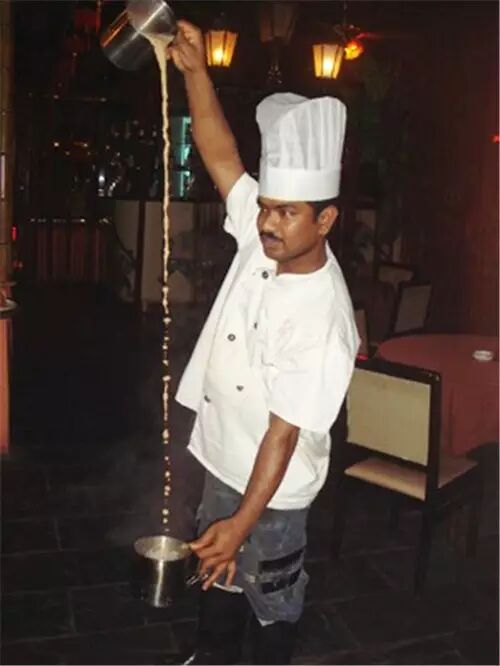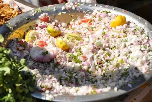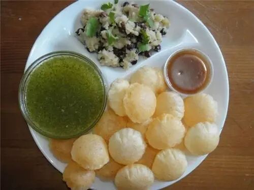 东南亚国家南亚国家都比较流行的一种街头小吃,直接叫它油饼果汁吧。吃法很有趣,首先拿起个空心炸面团,薄薄脆脆的,近乎透明那种,然后找到面团上的小开口,或是自己戳一个出来,倒上料汁,说是迟那时快的放进嘴里,就会感到一股凉丝丝的水意滑下喉咙。说是吃,不如说是喝,因为料汁是用薄荷、芒果、柠檬、罗望子酱(有的还会加上朝天椒)、土豆泥做成的,夏季还需要冰镇过。很奇怪的搭配,酸酸甜甜辣辣。