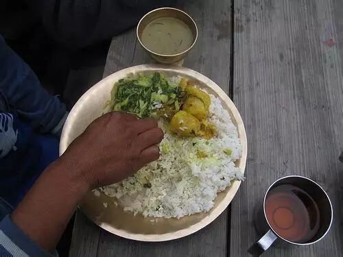 印度手抓饭,一定要用手右拌饭、食用。左撇子也只能入乡随俗。