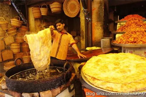 大油饼和烤饼是印度街头常见也是真正本土的小吃,不像在其他国家很是流行的印度甩饼,其实是由在异国他乡的印度人根据当地人的口味,做出来的,并不原产于印度。