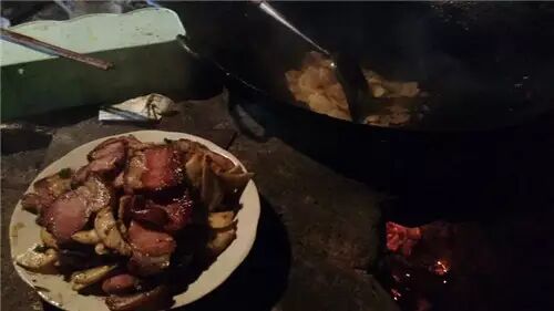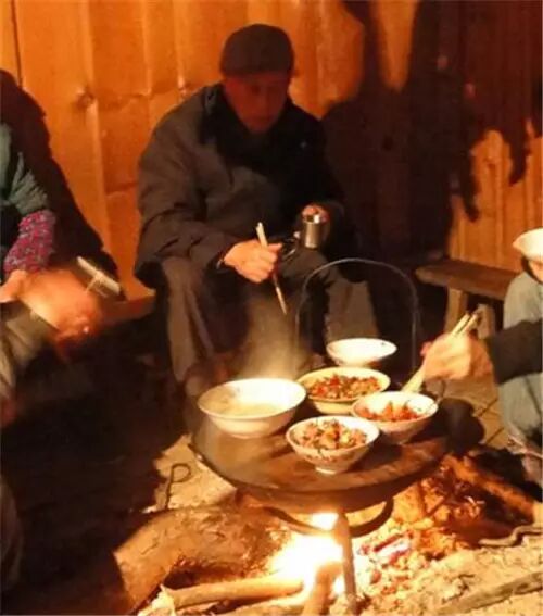 锅子其实并不是一种菜的名称,它是把许多食材在铁锅里炒熟了慢慢吃,特别之处在于它是就着火塘吃的,或是架一个小风炉支着锅子,边做边吃,像吃干锅,食材可厉害了很多。烟熏腊肉,野菜干、新鲜蔬菜,自家炼的猪油渣,光是列出名目,就已经忍不住口水了。