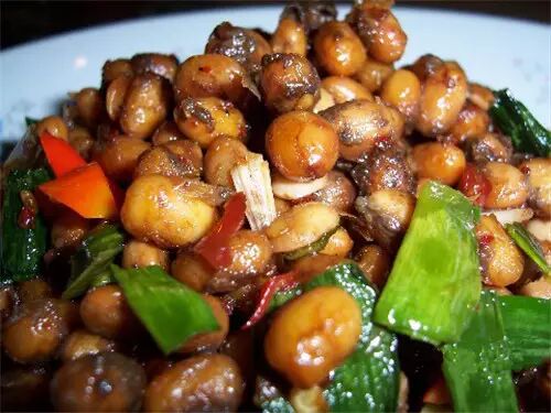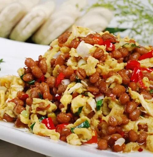 与霉豆豉的做法一样,只是发酵时间没那么长,捂出霉以后,用盐、姜和花椒搅匀,放进坛子里,十来天就可以吃了,过了这个期限,就成了豆豉。