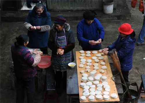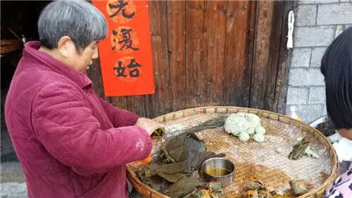 然后,逆着回去上班的人群走,走到城边上去,走到不需要朝九晚无的地方去,旧历年前,那里正忙着准备年货,每一样都是自家人亲自抓拨的。头几天,先是把去年剩下的腌腊肉,用干辣椒鲜辣椒好好炒出一盆来,饱饱足足的吃几顿,吃完以后,就该续趟了,自家养的猪、鸡、鸭、鹅陆续赶出来,完成各自的使命,剥洗好,抹上盐巴辣椒面花椒面,用重物先压上小半天,将多余水分挤压出来腌制出来。第二天就挂到檐下,由它风干几日,水分沥得差不多了,就收到火塘屋里,围着火塘挂上一圈,任它一个冬季都在燃烧着的火塘火熏制腊干。在火塘向火抽旱烟的老人,有一辈子的腌腊肉经验在,只消时不时的用烟管拨拉几下挂肉,就瞧得出哪里需要补盐,哪块已经可以下锅打牙祭了。