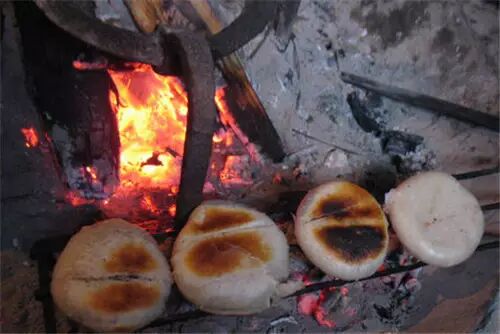 冬天,火塘里升起火来了,老辈人围坐在火塘边,向火,抽旱烟,偶尔和过来串门的老人聊上一两句话,余下时间皆是沉默。节气收成即没有什么好说的,家长里短也不是老汉子人的话题,几辈故事都在沉默中流传了下来,并没有断代,代代年年都是一样,那么也就无讲述的必要。旱烟的火色明灭里,老人唯一的大动作,就是用手去翻转靠在火塘边边上的糍粑块,等到两面烤得发泡起来再落了下去又泡起来,就捡起来放到一边,不一会儿,小辈人就慢慢围坐过来,默不作声的用手扑打着糍粑上的柴灰,一面就喂到嘴边,咬一口,不忙着嚼咽,因为实在太烫。从咬开的那个缺口腾出热气来,裹着糯米香气,馋得人不行,也还是只能规规矩矩的等到稍冷一些再吃。