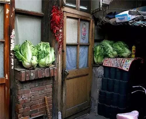 北京冬储大白菜的景象不知道是怎么会引起全国人民的关注的,可能是因为某篇中学课文的缘故。那是几十年前的事情了,那时候北京人过冬的两件大事,一件是囤煤饼,另一件就是拉着三轮车、板车到菜站去装大白菜。装回来以后把表皮水汽放放干,紧接着,就是一棵棵的摞到墙角根去,摞到窗台上去,挨挨挤挤,有的头朝外有的头朝里,等等不一,码实了,最后盖上毡子。