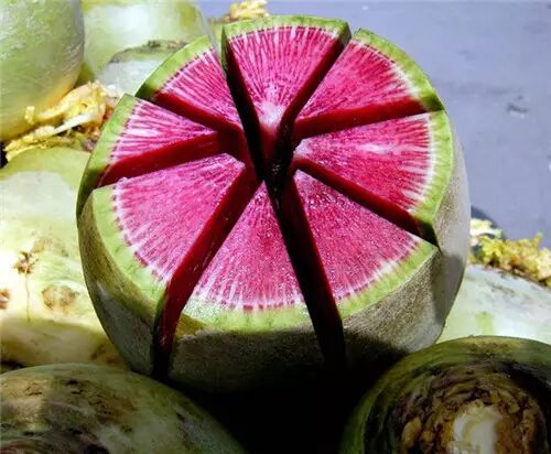 这一句萝卜赛梨的叫卖,和“换取灯”一样,早已经成为了只在书本上出现的老北京市声,连在前门大街的模仿秀里也不会有了。但这种赛梨的萝卜,现在还有,名字叫心里美。红心绿皮,削皮当水果吃,不辣不涩,不但赛梨,在切丝、用糖醋和香油拌合以后,又能抵过一道菜去。