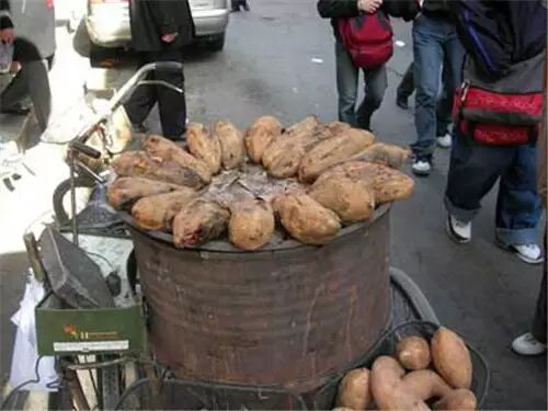 冬天的街头,到处是这样的烤白薯摊,说是摊,其实就是一个只容一个铁桶的架子车,桶边上挂着火钳、手套,最最不能少的还是一杆秤。烤白薯大概是唯一还保存着古老称量方式的营生了,不论个,都是论两卖。每次看到小贩拎起秤杆,都下意识的觉得钱包一紧:想当年,烤白薯虽然是平民饮食,可价钱却是比糖葫芦贵出许多的。但是一个冬天,不吃一个烤白薯,怎么算是冬天呢?