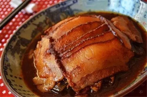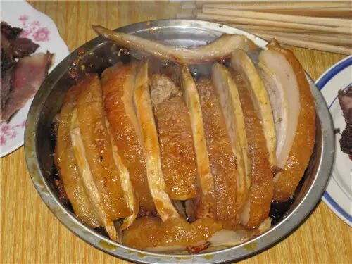 此盐酸非化学里的盐酸,而指的是一种盐腌菜。不是咸菜,是腌菜,并且是酸味重于咸味的腌菜。制作方法和千张肉基本相同,将猪五花肉连皮烤香,特别是皮要烤至起皱,然后用水洗去烟灰,划几道开口,涂上酱料,下油锅将表层炸香,起锅沥油以后,切成大片,盖在铺满盐酸菜和姜丝的盘子里,上蒸笼蒸至肉皮酥烂才成。