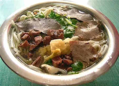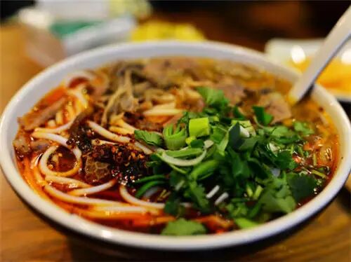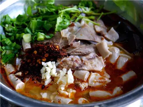 羊肉粉用的粉,就看各地的了,每个地方都出产软硬、黏度各不相同的米粉,有圆形的米粉,有扁扁薄薄的宽粉。每一碗粉都色香味十足,你还可以配着羊棒骨吃。想想,这样热腾腾的一个汤碗捧在被冬天的冷空气冻僵的手上,这样一种香气打破冬日被冻结一般的空气传到你的鼻子里,这样浓郁香辣的味道在你的口舌之间发力,你还能憋得住吗?