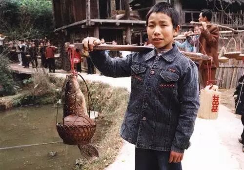 冬天到贵州东南边的侗族寨子里去,如果有缘法,你可能会遇到一支喜庆的队伍。前面有几个男孩子分别用小小一只竹杆挑着一条大鱼,一个接一个蹦蹦跳跳的走着,鱼身上通常贴着个红封。除了鱼,小杆上还挂着一个竹篓,里面装的一般是腊肉腊肠腌鱼,分量都很轻。后面紧跟着的是青壮年,挑着箱箱笼笼,都是大家伙,有家具物什,有大筐的烟熏腊肉、大桶的彩色糯米饭、大缸的米酒。最后面,走着寨子里有声望的老人家,拿着烟袋,顶和气的和遇见的路人拉话,邀请大家到新人家吃饭喝酒。至于你是否能有幸进入被邀请的行列,那看运气,现在,我们先来关心一下小孩子挑着的那条大鱼。