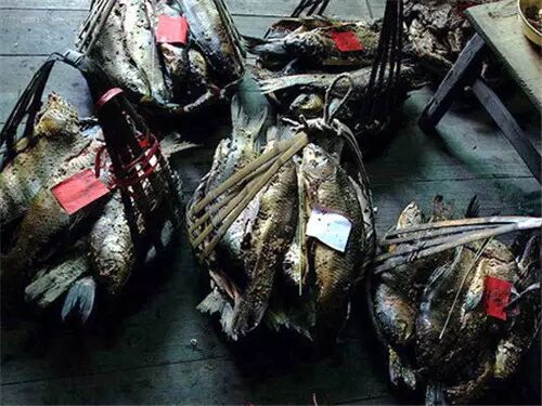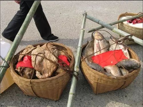 在婚庆喜事上打头阵的大鱼,其实是腌酸鱼。酸鱼一般是用谷花鱼,也就是在水稻田里长大的鱼来做的,秋季做成,可以长期存放。春节前后,婚期密集的日子里,村寨的山路上满多挑着这种酸鱼的小孩子,这是侗族的一种婚俗。