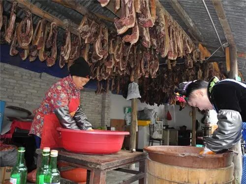 因为人手众多,还能顺带着把下一年要吃的腌腊肉腊肠也一并做了。一年中最忙最慌乱最隆重的一天,在大家的齐心相帮下过去了。可以气定神闲悠哉哉的迎接春节了!