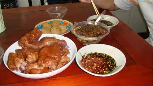 Q弹软糯的卤猪蹄,是你在贵州游玩期间一定会遇到的一种美食。南方冬天的湿冷不是闹着玩儿的,穿几层羽绒服也阻挡不住冷空气往你骨头里钻。这个时候,就适合找个街边小店坐下,请店家从热气腾腾的大卤锅里翻检出两三只卤汁浸到最透的猪蹄,把筷子插进骨缝处一扒,就可以轻松的剔去骨头,把肉蘸着特调的香醋来吃了。更本地人的吃法是,蘸着折耳根蘸碟吃。