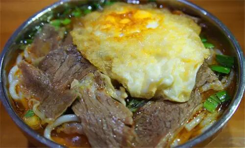 做法类比羊肉粉,吃起来同样要撒上蒜苗、薄荷。吃不惯羊肉的,来上这么一碗热乎乎的,人生也很圆满了。
