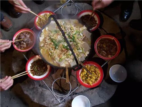 这种吃法是战场上的发明,古人行军打仗,被对方围得紧了,粮草供应不上,只得就地取材,用打来的野味和随身带着的腊肉,加上随手掐的野菜,在拾来的瓦片上烙着吃。