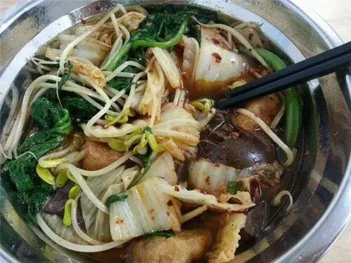 饵块酱和北方的面酱不一样,种类也忒多,再加上拌菜种种,一个两三块钱的饵块可能需要配上十几个瓶子里的佐料来搭配,光是看看这种阵仗,就觉得吃的挺不错了。