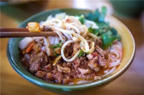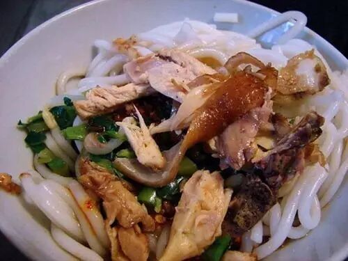 煮的乎烂的猪肉,配上高汤饵丝,撒上韭菜碎,拌上油蒜油辣椒,啧,这一碗是真好吃。古城早点铺里都有,不过饵丝倒是饵丝,耙肉就不一定是耙肉了,很多是用炒得不太好的硬的酱肉来替代的。想吃正宗的,跑到下关去吧。