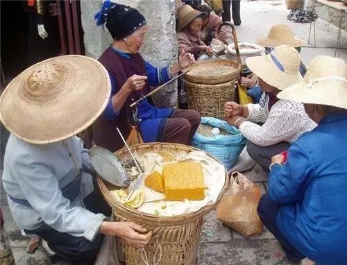 大多是白族老奶奶在卖,用荞麦面做的蒸糕,有荞麦特有清香,调面的时候大多放了糖,吃不出苦荞苦凉苦凉的滋味,但是味道是不错的,可以当小点心,冷了吃甜味更入一些。