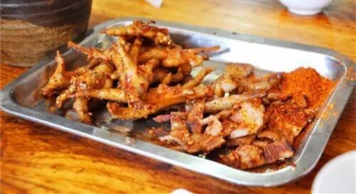 蘸着酱料烤出来的肉天生有一股馋人的香味,更何况烤熟了还要撒一层椒盐。不过这个品质真是难保障的,在同一家店里,上一串还好吃得呼天抢地,下一串可能就烤不透了。