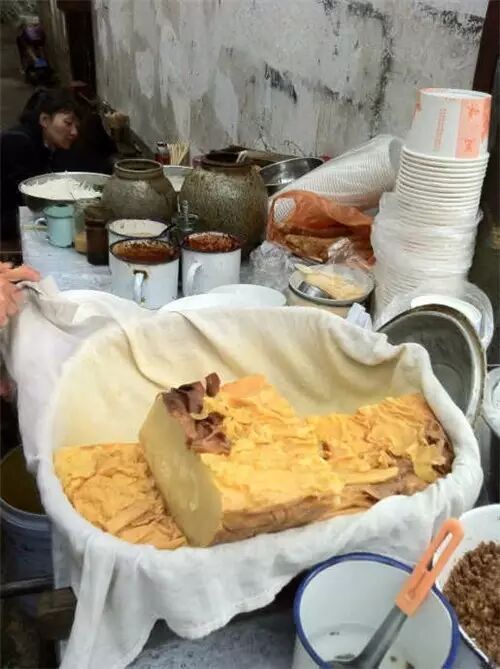 有红糖馅儿的、苏子馅儿的甜饼,有葱花猪肉馅儿的咸饼,面皮一定要是破酥的才好吃,这是考技术的,不过古城里卖这个粑粑的并不多,基本味道都还不差。热乎的才好吃,冷了面硬,甜饼还行,咸饼冷了以后就极普通了。