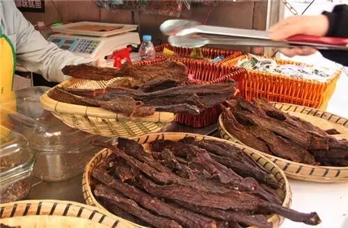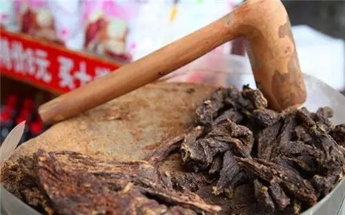 这个打的是西双版纳特产的旗号,在云南各个旅游景点都有得卖。就是将牛干巴(类似牛肉干,香料要不同一些)用小木锤捶松,吃起来方便一些,肉丝是干香干香的,吃多了口干的慌,里面可能味精放重了。