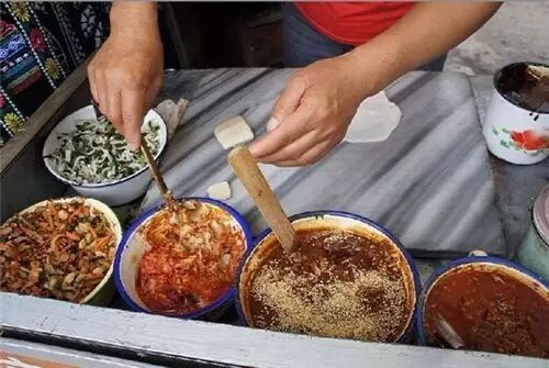 卷粉和米线都是米浆做的吧?形状不同,滋味也很不同嘞,卷粉可以切成小圈拌着吃,拌法像抓抓粉,通常还会切上几块豌豆凉粉搭配着。另一种卷粉是大卷的,比凉拌的要薄,很容易就扯破了,铺开在木板上,涂一层酱铺一层拌菜撒一层香料再浇点酱,卷巴卷巴成一筒,酸酸甜甜菜香米香,倒很开胃。做的难吃的不知道是为什么,简直让人怒其不争。
