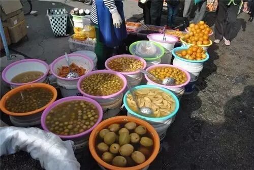 这种盐水泡的梨,吃起来有一种很奇怪的口感,里面应该还加了甘草桂皮之类的。梨要泡到对光有点透明的时候最好吃,没有泡透的果子只有表层有香味,而泡得太过的果子,果肉已经软了趋于腐烂,吃不出那个脆香劲儿。除了梨还泡其他水果,比如酸木瓜、梅子、杏等。个人还是喜欢泡梨。