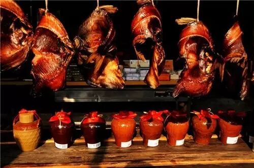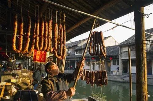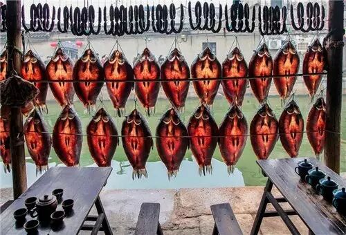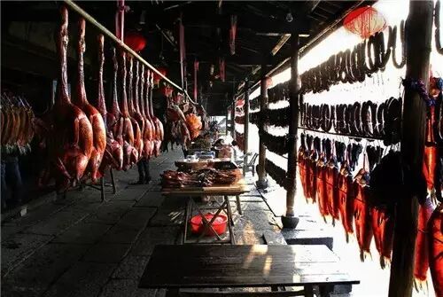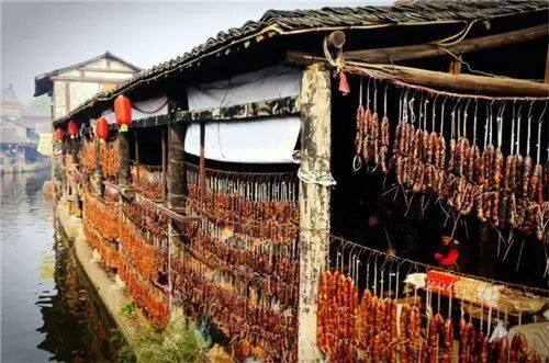 南方的古镇、古街和腊味基本是分不开的,每条古街上都多少挂着些腊肉鱼干,平添一股风味。不过,很少有古镇像绍兴的安昌古镇这样,仅凭腊月间挂在房檐廊下的腊肠腊鸭鱼干腊猪脸就能成就一大景观的。