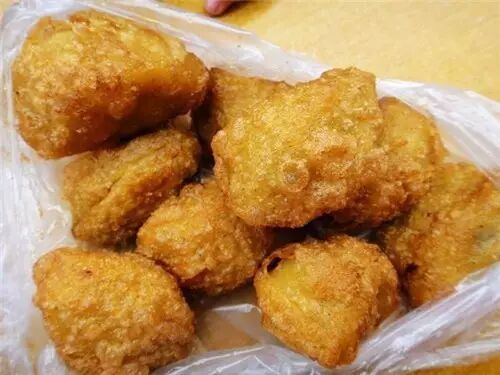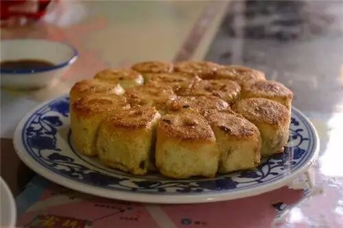 也就是炸糕,炸熟以后,表皮上有金黄色透明的小圆泡,所以又叫泡泡油糕。想想这些酥脆的小圆泡一个个被嚼碎了会是什么样的口感,当然除了香脆还是香脆,夹杂着内馅儿枣泥的甜糯。