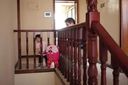 淘淘妈妈想孩子不过是想变个花样走楼梯,不妨想个两全其美的办法来解决。有一次带淘淘出门时,妈妈拿了块抹布垫在了淘淘的胳膊底下,淘淘磨着扶手下了楼,扶手被擦得很干净。