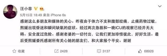原来,大S在生产过程中因摄入过量麻醉药以降低疼痛,导致癫痫发作,出现昏迷及瞬间缺氧症状,一度住进ICU病房。不过好在经过治疗后,大S已经脱离生命危险。
