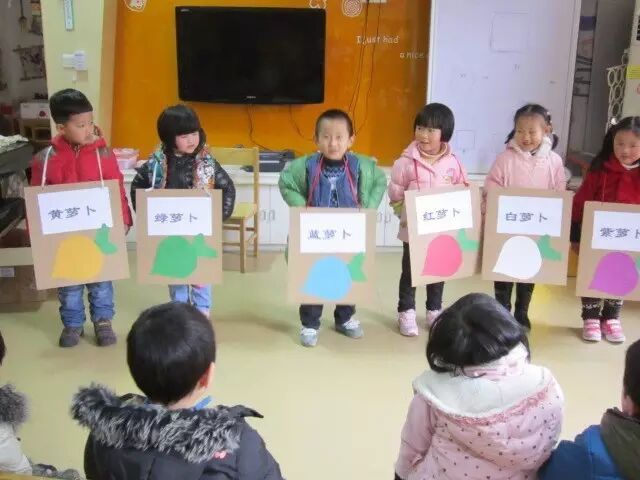 爸爸、妈妈和孩子每人选择一种颜色,代表一种萝卜颜色。一个人先说:“××蹲,××蹲,××蹲完,××蹲。”(例:红萝卜蹲,红萝卜蹲,红萝卜蹲完黄萝卜蹲)被叫到的那个颜色的萝卜,蹲下重复指令,以此循环,节奏会越来越快。在游戏过程中,需要孩子高度集中注意力,同时也锻炼了孩子的思维反应能力。