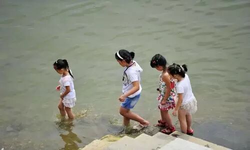 有些孩子喜欢在溪流或池塘中玩水或游泳。但有的池塘底部尽是凹凸不平的岩石、破酒瓶或者垃圾,这些东西很可能会划破孩子的脚。而且水的深度也不可知,所以家长尽量不要让孩子去这种地方玩水。