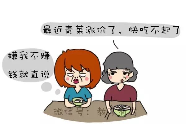 我刚开始不上班的那年就是这样,婆婆说最近白菜价涨的比肉还快,都要吃不起了,我听了心里就觉得她嫌弃我不赚钱;老公下班后躺在沙发上说了句“还是自己家舒服呀”,我就觉得自己好像在家偷懒享清闲一样,很不是滋味……