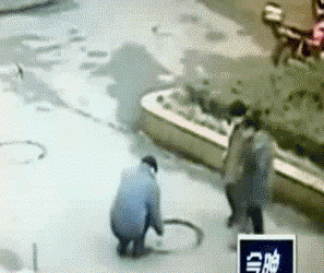 这是河南某小区,一男童将点燃的鞭炮扔进小区窨井中,瞬间,窨井内传来爆炸声,窨井盖和男孩都被炸飞,男孩在空中翻了一个跟头后坠落在地。万幸的是,男童只是身体擦伤,没有生命危险。