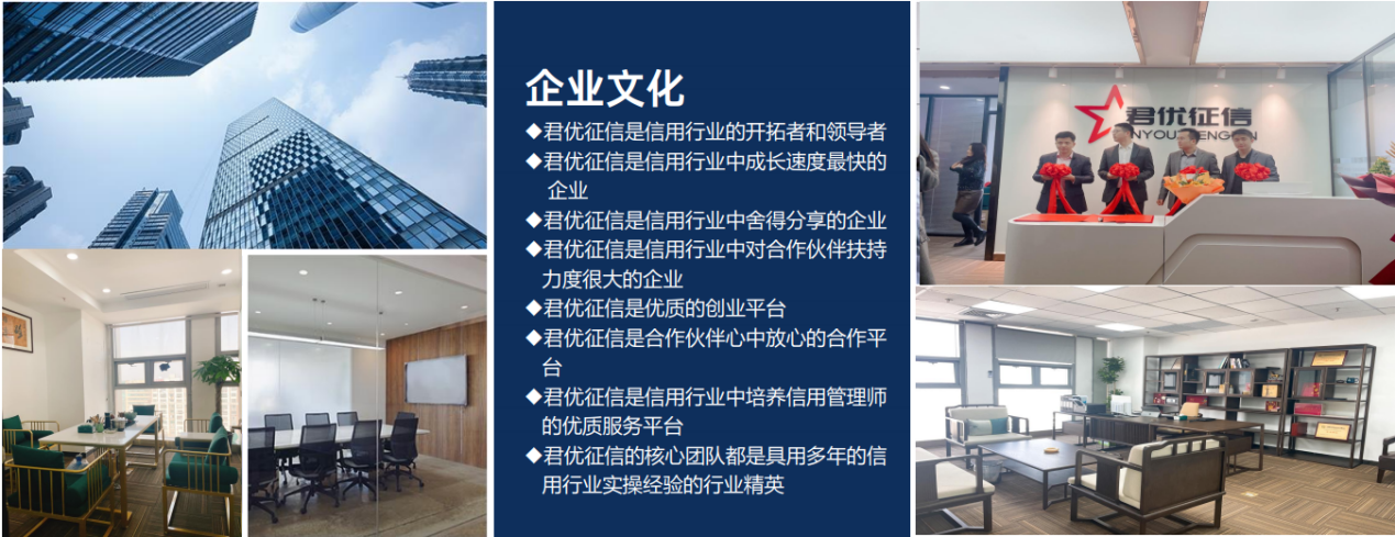 君优信用公司始终以客户需求为导向,以大数据、信用管理、人工知能等数据化技术为支撑,为客户提供数据信用、智能风控、信用管理及咨询、信用修复于一体的综合性专业信用服务,实现信用服务全领域、全场景覆盖。