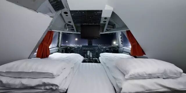 最拉风的当属这个位于驾驶舱的双人房。价格约1850克朗一晚, 属于青年旅舍界的黄金土豪版。