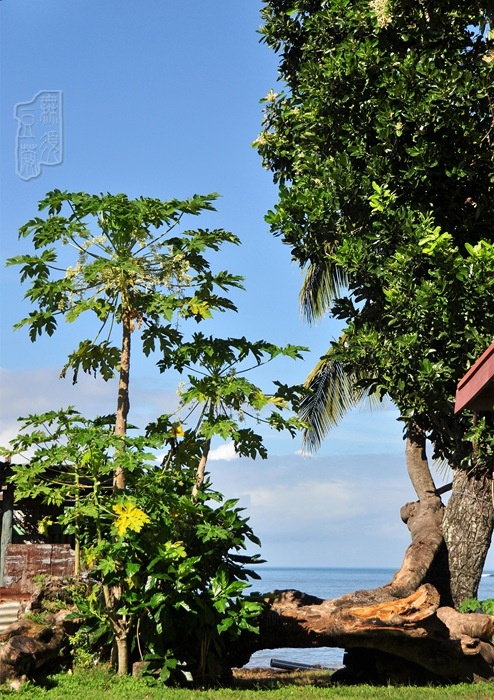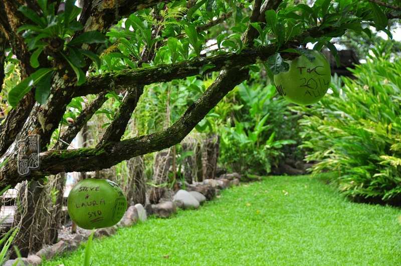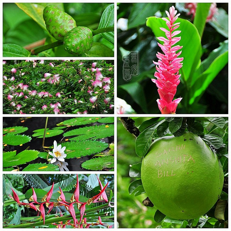 随后我们前往睡巨人公园,参观一处斐济最大的兰花园。斐济属于热带海洋性气候,所以这里的植被特别茂盛。在这里第一次看到粉红色的香蕉,可惜不能吃;各种兰花和不知名的花草;树上结的果实,被刻上了名字,问过这是什么?被告知类似于我们的葫芦,长成后也可以做水瓢,有意思吧?也看到很多特别的花卉和植被,沿着小路有点在丛林的感觉。悄悄地说:我更喜欢游累后的那杯冰鲜果汁,冰冰甜甜鲜鲜的,好过瘾。