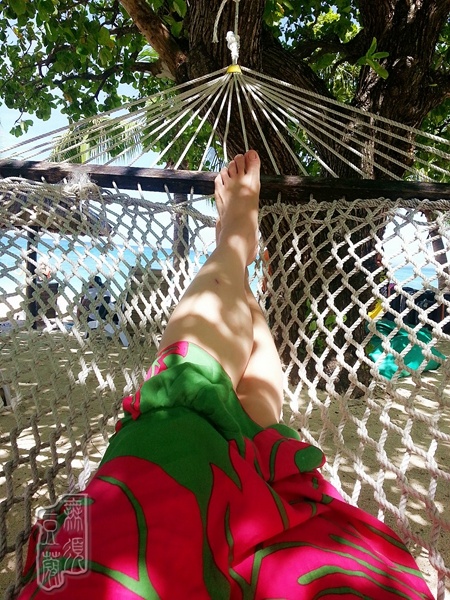 当你真的在金银岛上安逸下来,处处可见两树间的吊床,你惬意的躺在上面,树荫遮日,却又享受着阳光。这个时候不需要网络,也不需要去潜水,更不需要谁来打扰。就是躺在吊床上,晃晃悠悠,那个时候真的什么都不想,大脑空白到时光静止。看着头上树影摇动,星星点点的阳光,不远处的海浪……一切这样远离隔世。就像:每个人的心都是一片海,闪耀着深不见底的幽蓝。(