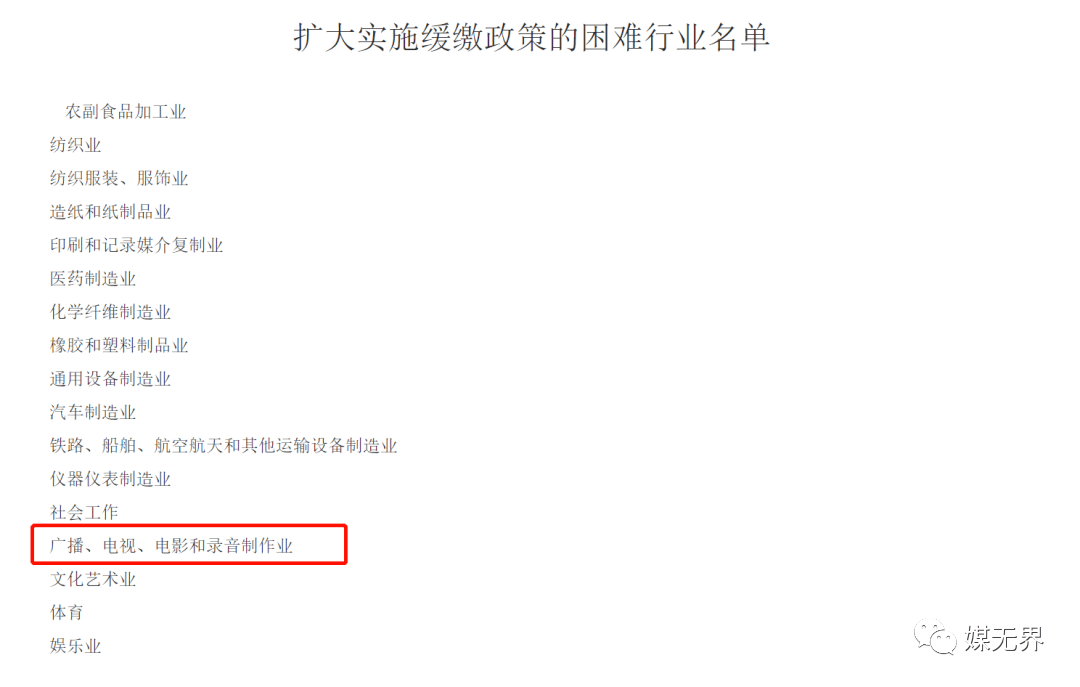 也不失一个好办法。目前,针对广播电影电视领域的扶持政策很多,包括国家级的,还有很多是省级政府提出的政策。虽然此次四部委发布的《通知》仅仅就缓缴相关费用予以扶持,但还包括很多地方性的扶持政策需要与相关部门沟通执行。目前地方的扶持政策是一地一策,比如江苏省委省政府对广播电视和报业的扶持力度就很大,包括可参股省内上市企业、相关文化基金扶持等政策,让仍有很多困难的江苏广电总台和新华报业集团收获颇丰。