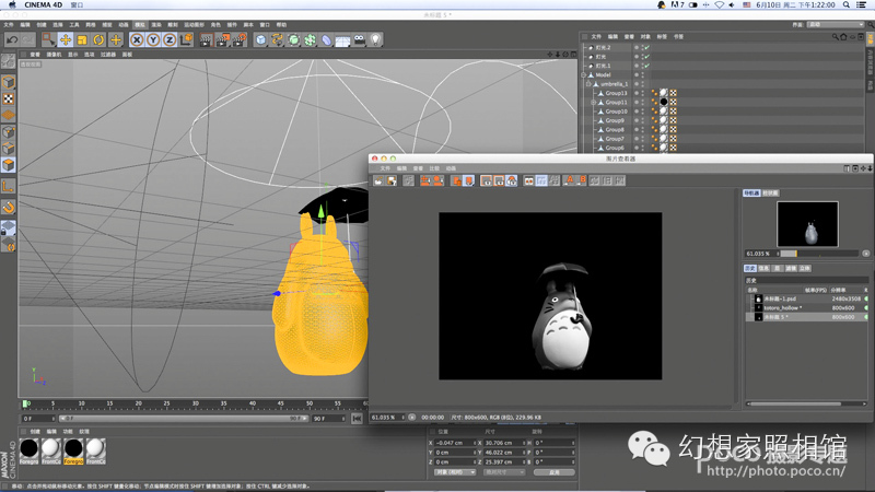 第一步我对整个画面的构图和色彩进行一个初步的处理,使得画面看起来更加的和谐。接下来我用到了Sktchup,Cinema4D进行龙猫的制作。http://mmbiz.qpic.cn/mmbiz/eqajynjSiajsAZx3FlSZMX0ESqrXlumTNLTJaxenD0VBDcVkEeUe2oRr3ZAVvdmMN0YXic852U0UR1El8nWr36dA/0