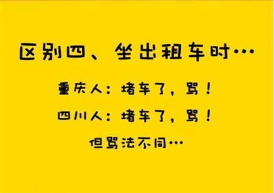 车子被堵了,重庆司机伸头出去,对着前面数十辆出租车同行祖宗十八代一顿乱骂,骂完了,又坐回来,很礼貌的对客人说,“诶,你到哪点儿喃?”