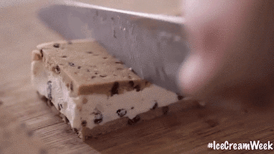 5 最后,拿出冻好的饼干三明治,然后切成小块~