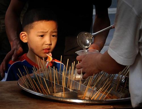 人之最馋的时候是在想吃一样东西而又不可得的那一段期间。希腊神话中之谭塔勒期,水深及颚而不得饮,果实当前而不得食,饿火中烧,痛苦万状,他的感觉不是馋,是求生不成求死不得。馋没有这样的严重。人之犯馋,是在饱暖之余,眼看着、回想起或是谈论到某一美味,喉头像是有馋虫搔抓作痒,只好干咽唾沫。一旦得遂所愿,瓷情享受,浑身通泰。对于家乡风味总是念念不忘,其实“千里莼羹,末下盐豉”也不见得像传说的那样迷人。我曾痴想北平羊头肉的风味,想了七八年;胜利还乡之后,一个冬夜,听得深巷卖羊头肉小贩的吆喝声,立即从被窝里爬出来,把小贩唤进门洞,我坐在懒椅上看着他于暗淡的油灯照明之下,抽出一把雪亮的薄刀,横着刀刃片羊脸子,片得飞薄,然后取出一只蒙着纱布等羊角,洒上一些焦盐。我托着一盘羊头肉,重复钻进被窝,在枕上一片一片的羊头肉放进嘴里,不知不觉的进入了睡乡,十分满足的解了馋瘾。但是,老实讲,滋味虽好,总不及在痴想时所想像的香。我小时候,早晨跟我哥哥步行到大鹁鸽市陶氏学堂上学,校门口有个小吃摊贩,切下一片片的东西放在碟子上,洒上红糖汁、玫瑰木樨,淡紫色,样子实在令人馋涎欲滴。走近看,知道是糯米藕。一问价钱,要四个铜板,而我们早点费每天只有两个铜板。我们当下决定,饿一天,明天就可以一尝异味。所付代价太大,所以也不能常吃。糯米藕一直在我心中留下了不可磨灭的印象。后来成家立业,想吃糯米藕不费吹灰之力,餐馆里有时也有供应,不过浅尝辄止,不复有当年之馋。