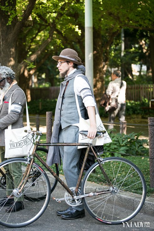 别以为英伦范儿只有在英国才会更正宗,在日本,你也可以找到志同道合的英伦范儿爱好者。在日本举行的复古自行车大赛就涌现了一大批英伦范儿的狂热爱好者。他们身穿复古的花呢纹西装,套上色彩鲜艳的长筒袜,踏着学院风十足的牛津鞋,以复古的名义耍帅。更重要的是,他们都是迷死人的潮叔……