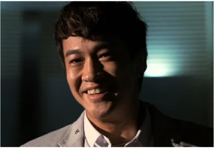 这段词是《大明宫词》里形容薛绍的,所以,男主角一定很帅气吧!然后就出来了这样一张笑脸: