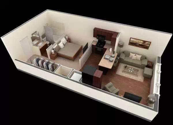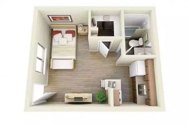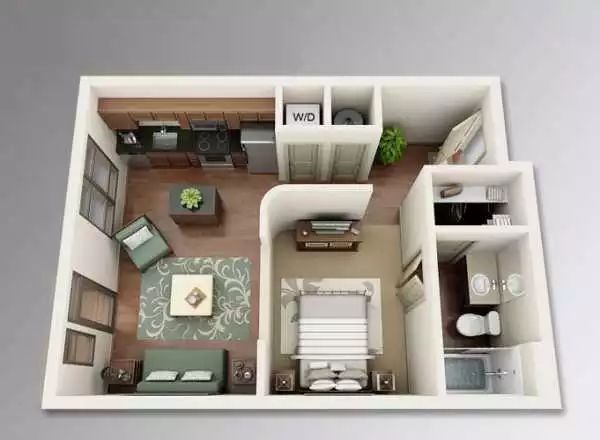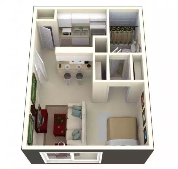这是另外一个30多平米的一居室设计