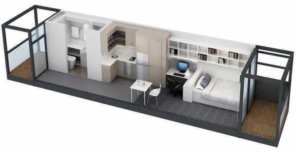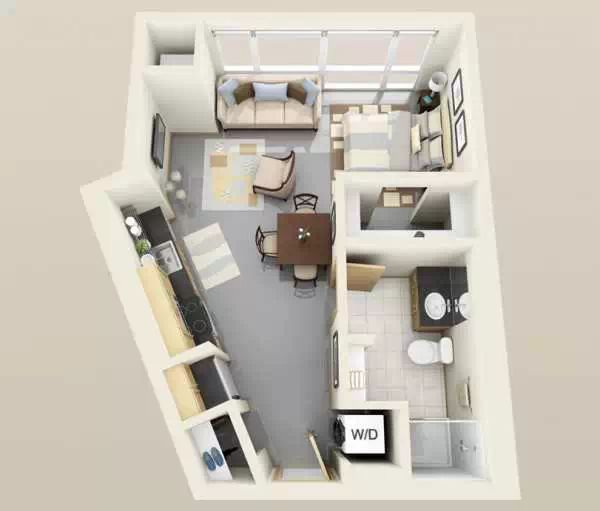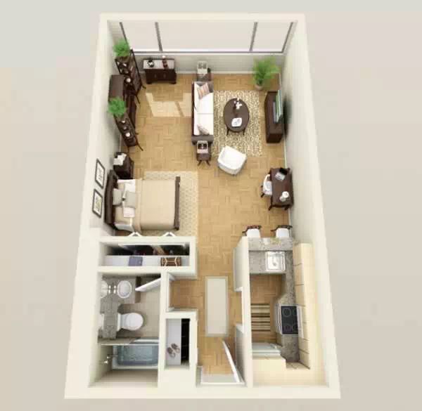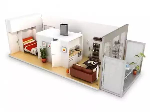 这个是在比较细长的狭小户型进行设计,甚至还带了阳台!